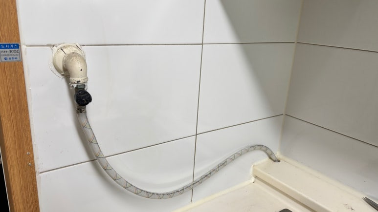 메인 주방 호스와 바로 옆 베란다 가스렌지에 연결된 호스의 상태...