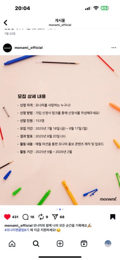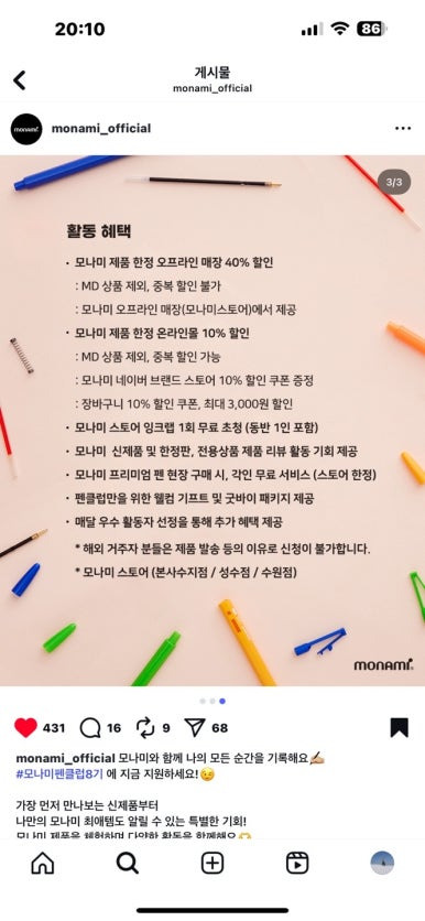 그리고 전해온 소식 모나미 펜클럽 8시 선정!! 문구를 사랑하는 1인으로써 너무 감사한일이었다