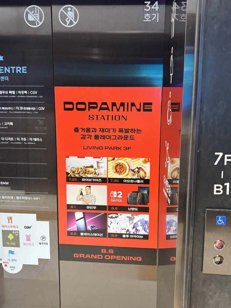 이렇게 엘리베이터에도 홍보를 하고 있는 ~~ 도파민 스테이션