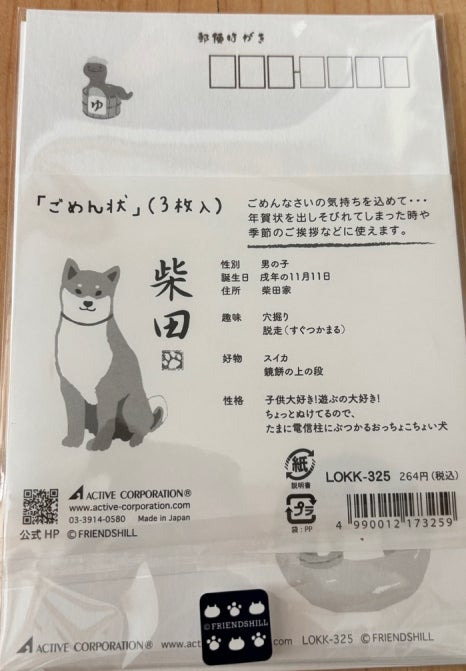 요것은 264엔 2,640원~! 귀여운 시바견이라 업어온 엽서~