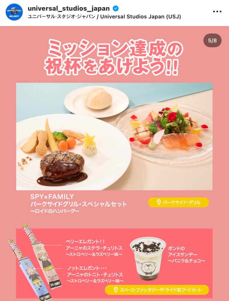 오른쪽 함바그 메뉴에서 땅콩은 아냐 포저가 제일 좋아하는 음식으로 등장~