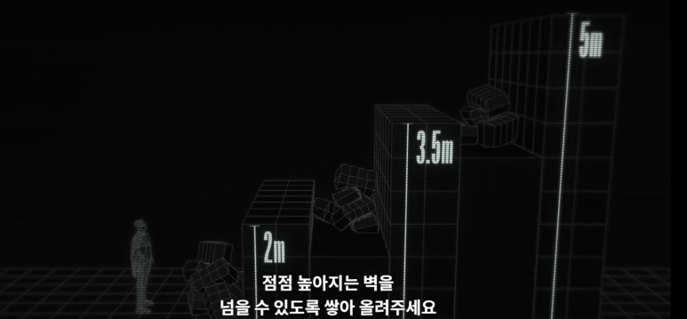 샌드백 20kg를 쌓아올려 최종 5M 높이에 60kg 검은 샌드백을 올리고 멤버 전원이 올라가