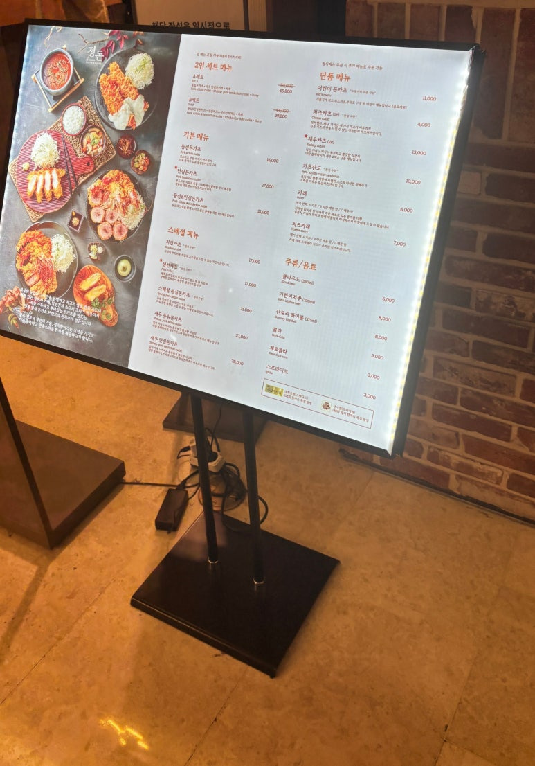 그리고 얼마전 들렀던 돈카츠 맛집 정돈의 메뉴판인데 이날은 품절이 없었던 날인가보다