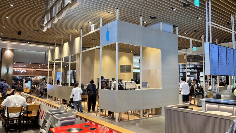 이렇게 현백 앞 쇼핑몰 아브뉴프랑에 판교점에 있고 판교 현백에 또 블루보틀이 들어와있는 모습이다..
