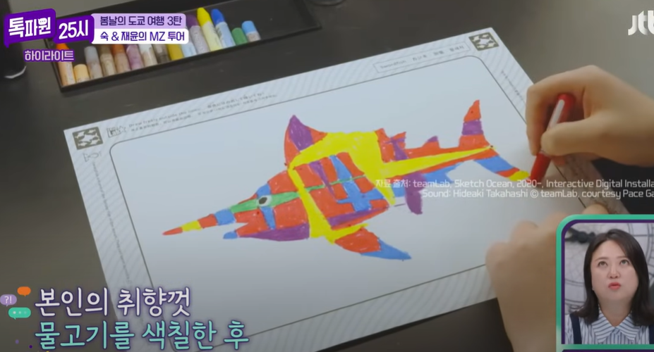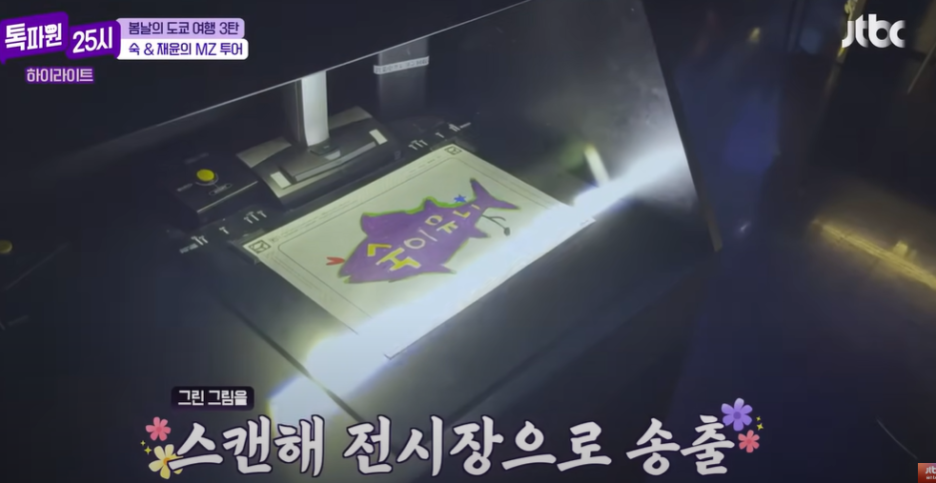 이렇게 앉아서 색연필을 가지고 준비된 종이에 그림을 그린후 스캔을 마치면 전시장으로 송출된다 ~~