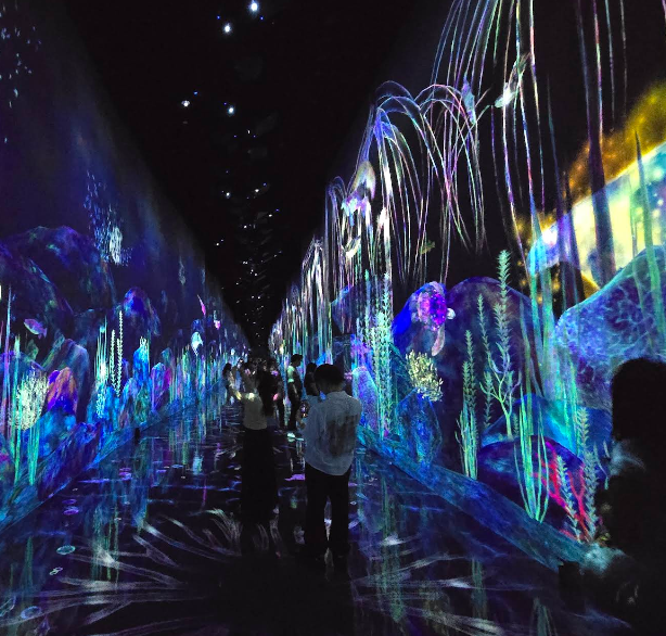 팀랩은 세계적으로 유명한 디지털 아트 집단으로 예술, 과학, 기술을 융합한 몰입형 예술을 만드는 팀이다