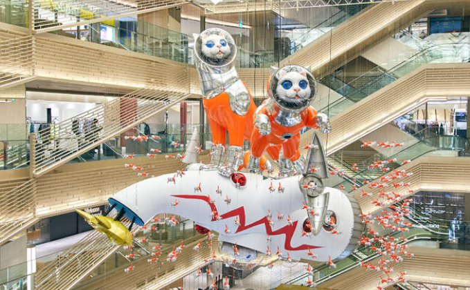 이전까지 설치되어 긴자식스를 빛내고 있던 고양이들은 야노베 켄지의 BIG CAT BANG작품