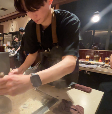 모든 몬자야끼는 스태프가 고객 앞에서 구워준다