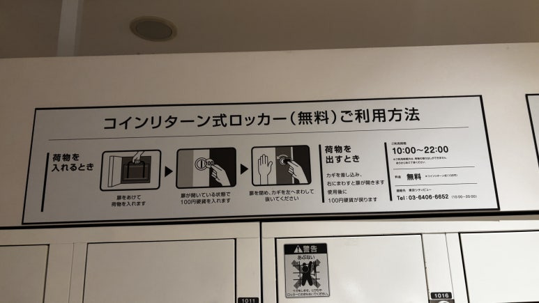100엔 동전 필요 문을 열어 > 짐을 넣고 닫은 후 100엔을 넣고 열쇠를 돌려주면 끝 ~ ! 보증금이니