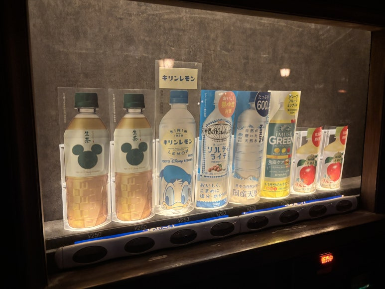 그리고 나오면서 본 귀여운 자판기 음료들 ^^ 녹색 말차 디즈니 음료 뽑아먹기