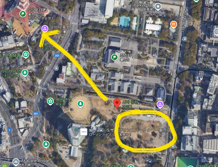 지난번 밤에 갔었던 윗 구역이 아닌 이 노란색 아래 구역의 넓은 공원을 가보는날 ~