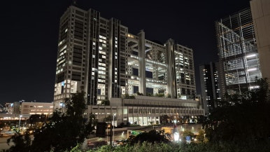 밤에 본 후지TV 건물의 모습도 ~~ 열심히 일하는 직원들~