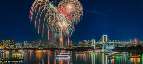 그리고 불꽃놀이 축제기간 빛을 발하는 오다이바 레인보우 브릿지이다