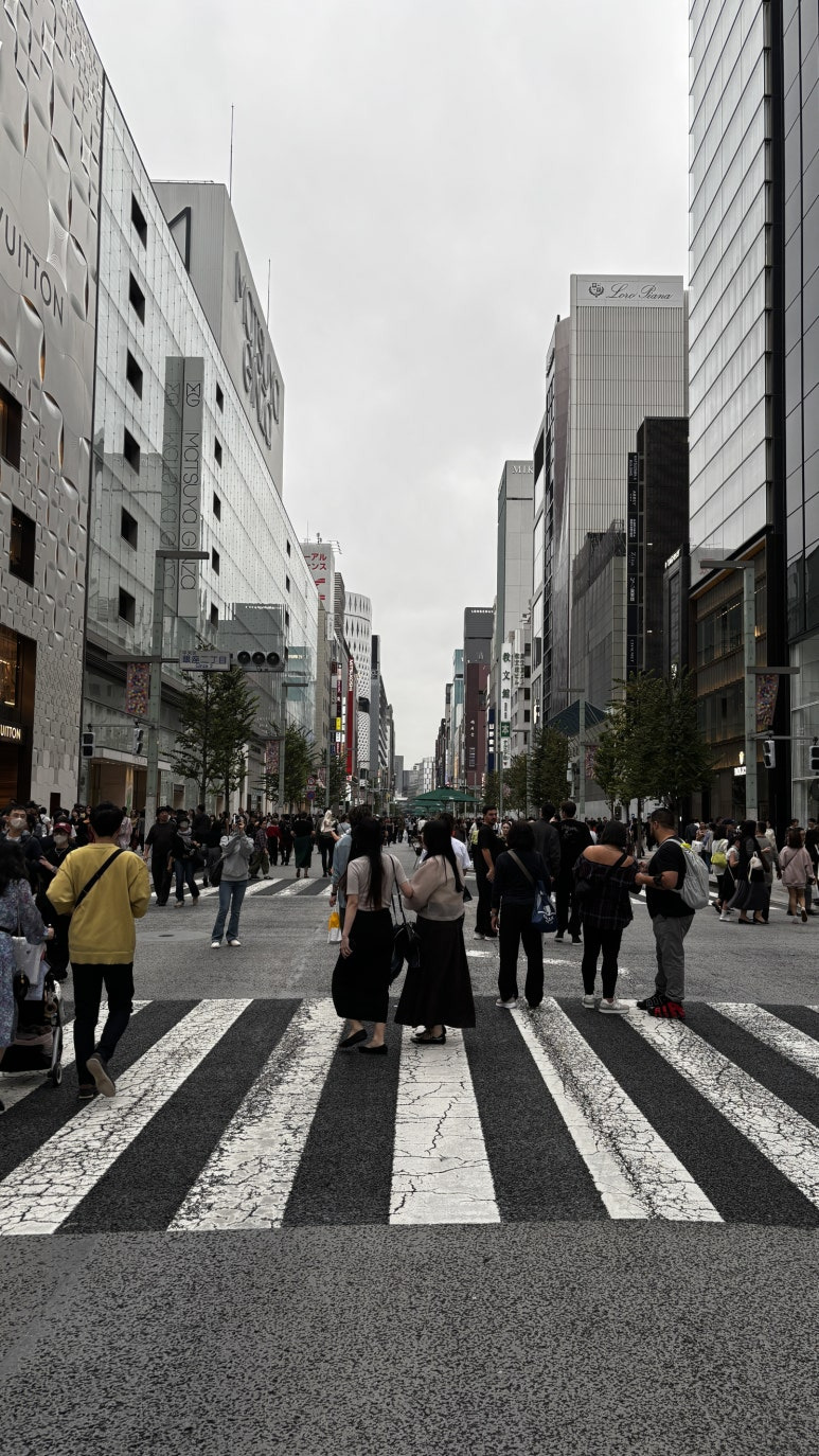 나갈 채비를 한 후 이날이 일요일 주말이라 긴자 주말 차없는 거리로 이동하기 위해 출발 >