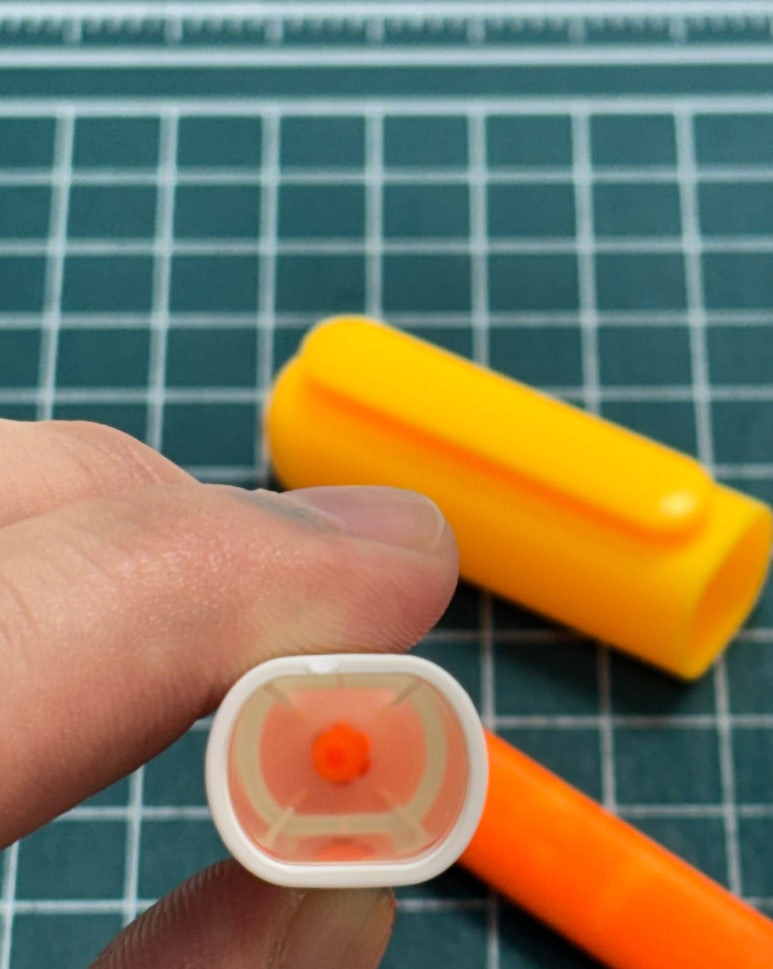 형광펜은 이 스펀지가 잉크를 머금고, 팁으로 서서히 전달하는 구조를 가지고 있다