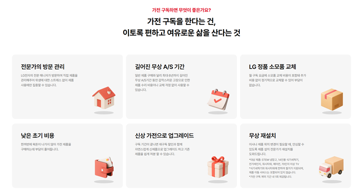 *자세한 내용은 LGE.COM 내 가전 구독 제품별 상세 페이지 참고