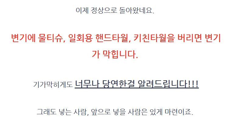 키친타올 6개정도를 그만....그만... 변기에 넣은 사건.. 그 결말은? 변기막힘 업체후기