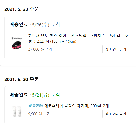 코로나 시절이니 마스크, PT 회원용 웨이트 리프팅벨트, 곰팡이 제거제 추가구매