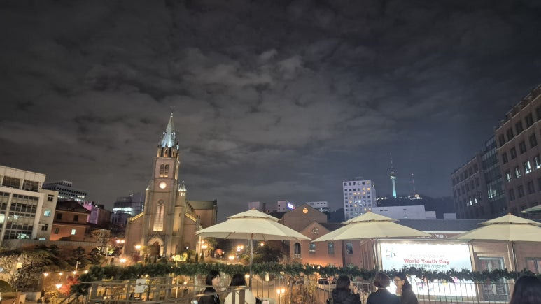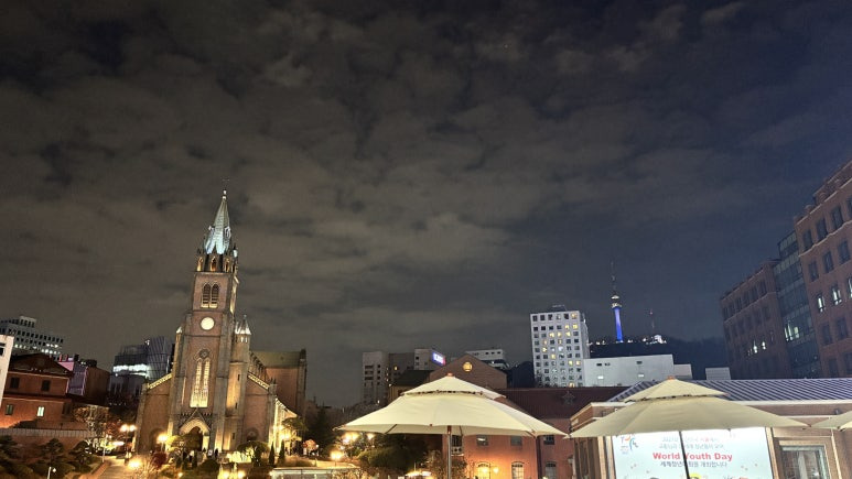 밤에 보이는 명동성당은 외국의 성당만큼이나 위엄있고 멋있었다
