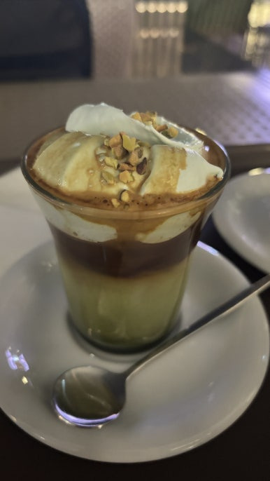 명동성당 보고 파인즈 라떼는 위에 피스타치오 크림을 먹은 후 나머지를 섞어서 먹어주고