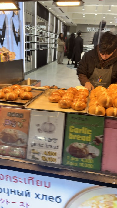 마늘빵이 구워지고 있고 옆은 오징어게임의 흔적이 아직도 ^^