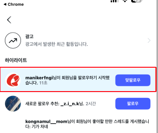갑자기 수상한 팔로워가 들어올 때 가 있다