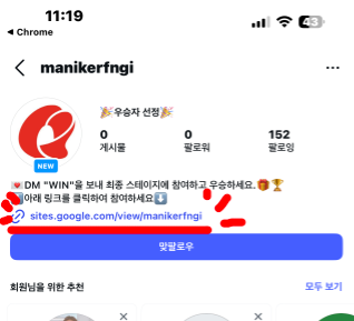 보면 알겠지만 게시물 팔로워 자체가 0인 계정이다... 그리고 아래 링크를 유도해 정보를 빼내는