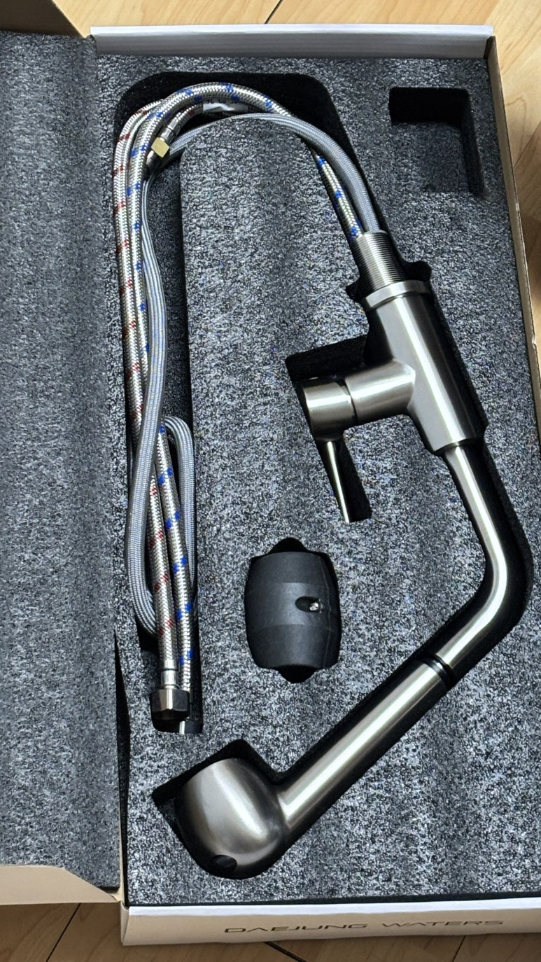 이렇게 수전이라고 하는 메인물나오는 곳과 아래 밸브(정수기 메인 밸브로 빠지는 것들), 무게추 까지