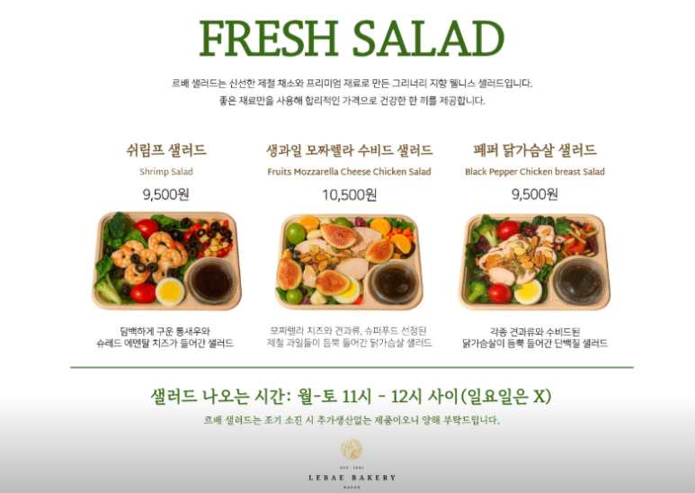 11시에 갔더니 없어서 12시에 다시 가서 사온 샐러드
