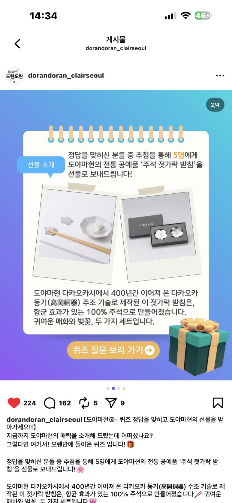 그 속에서 생생한 문화 체험이나 소식들을 알려주고 이런 퀴즈 여행 이벤트도 하고 있는 채널^^