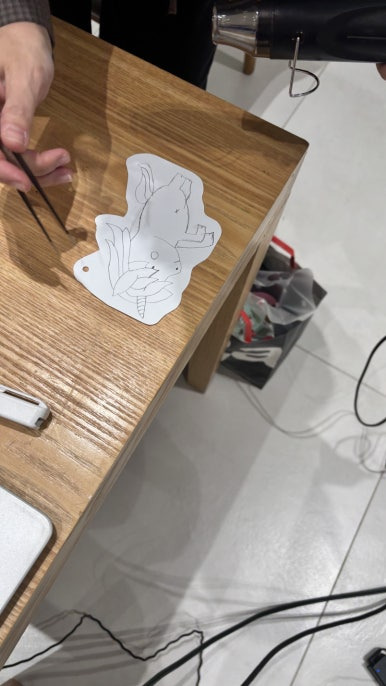 요렇게 펀치 뚫은 부분을 핀셋으로 고정해서 히터건으로 뜨럽게 골고루 달궈준다 ~