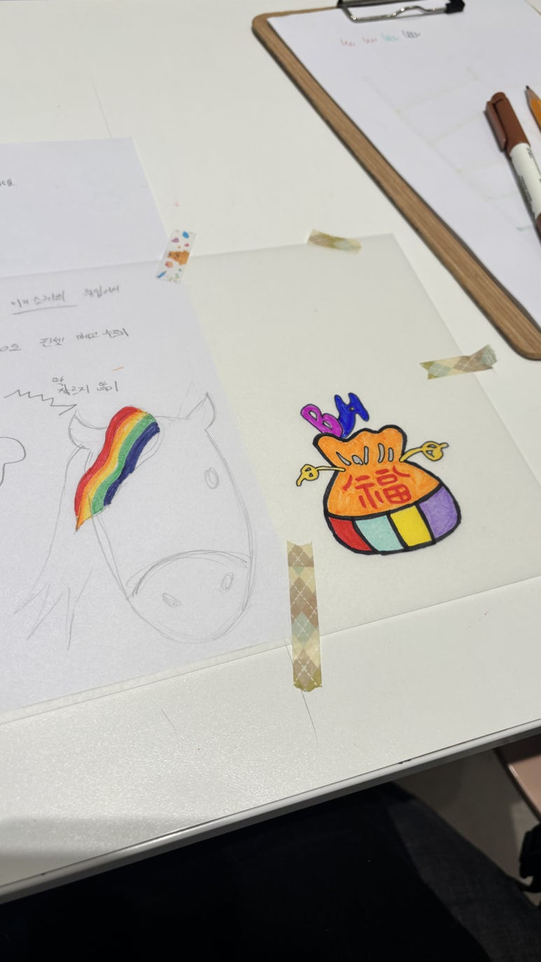 내가 그린 그림이 줄어들어서 키링된다니 ^^ 모나미네임펜으로 그리니 더 신났던 수업 지금 시작해보자