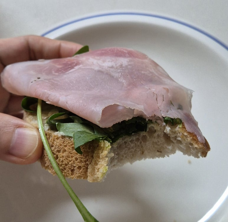 달콤한데 깔끔한 잠봉의 맛과 상쾌한 루꼴라까지 ^^ 거기에 빵의 식감을 더하면... 브런치다...