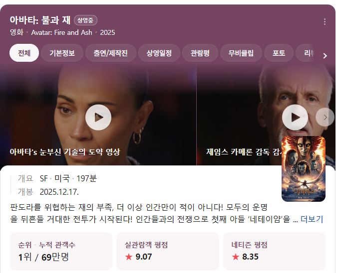 그리고 아타바 3 불과 재가 3일째 100만을 돌파한 가운데 과연 흥행이 될까?