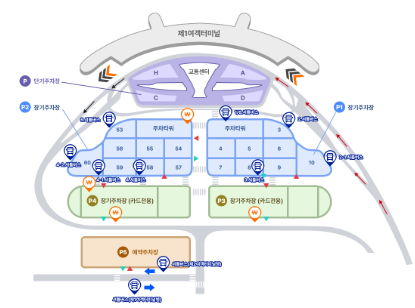 제1여객 터미널의 경우 교통센터 지하 1층과 3층 단기 주차장에서 차량 접수 및 인도를 했다