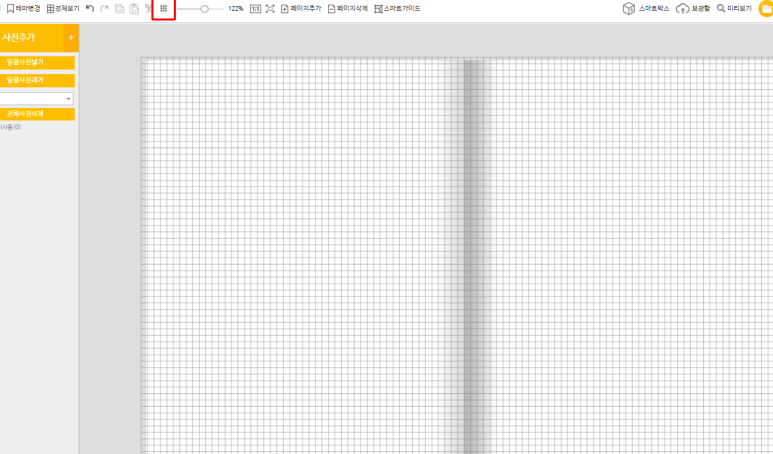 정렬을 하면서 사진을 넣고 싶을때 빨간색의 격자무늬 아이콘을 눌러주면 가이드라인이 나온다