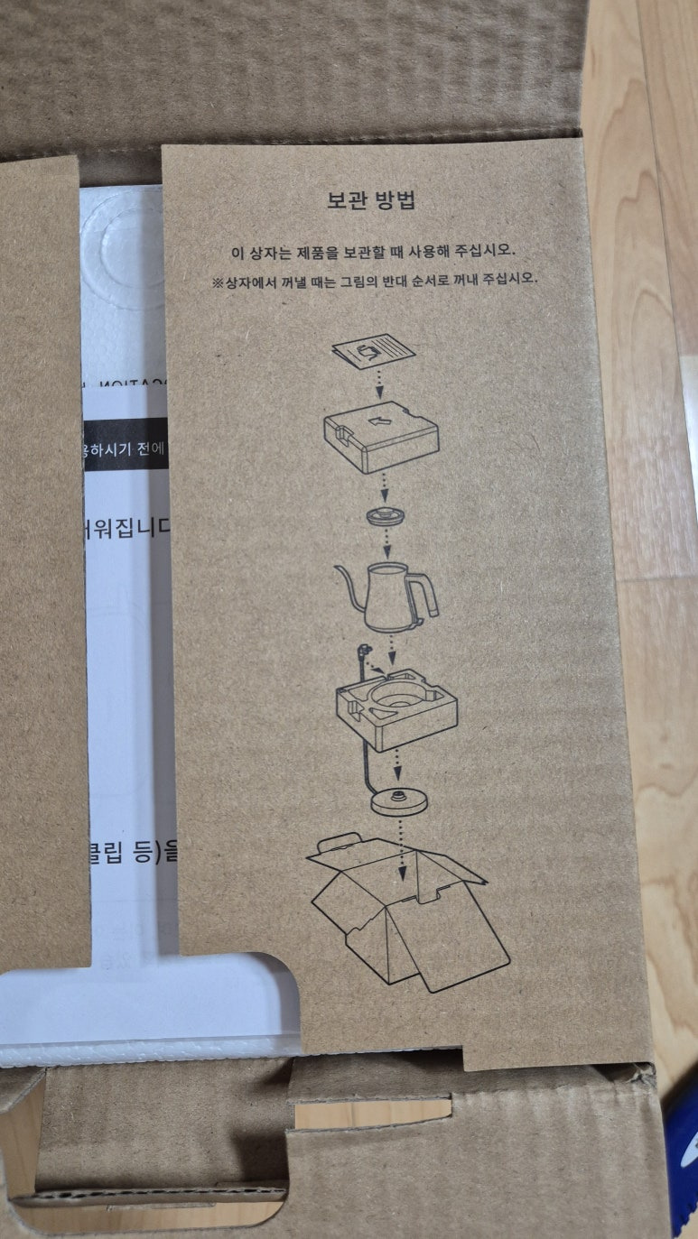 보관용 상자의 설명서 자세히 되어있는 발뮤다 패키지
