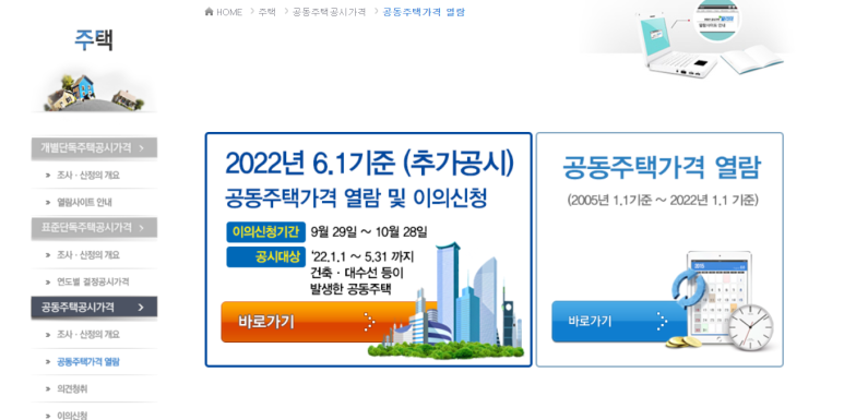 표준시가를 가지고 한다는 점을 기억하면서 다시 사이트로 가보죠